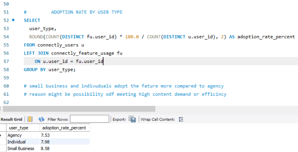 Insight: Individual and Free users show higher adoption; Agency and pro users lag behind.