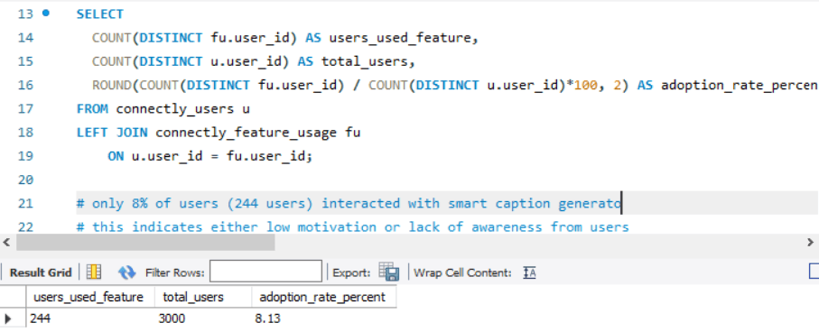 Low overall adoption | Only ~8.2% of users engaged with the feature |
